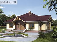 Строительный проект одноэтажного загородного коттеджа предназначен для постоянного проживания семьи из 3-5 человек. Красивый пятикомнатный дом с террасой предполагает наличие 4-х жилых комнат, часть из них при необходимости можно использовать в качестве кабинета или библиотеки, а также гостиной, в которой запроектирован камин. Наружные стены одноэтажного коттеджа – из блоков ячеистого бетона с отделкой цементно-известковой или тонкослойной штукатуркой. Элементы фасада облицованы клинкерной плиткой. Проект одноэтажного коттеджа разработан и в зеркальном варианте для максимально комфортного размещения здания на участке.