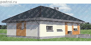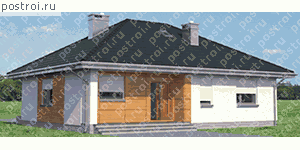Проект одноэтажного дома 10 на 13 экономичен в строительстве. Дом из газосиликатных блоков с четырехскатной кровлей может использоваться для постоянного проживания или для дачного отдыха. Запроектировано три жилых комнаты, два санузла, большая гостиная, совмещенная с кухней и котельная для отопительного оборудования. В доме два входа: основной вход – ведет с крыльца через тамбур и в холл, а дополнительный – с террасы в гостиную.