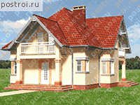 Загородный дом, общей площадью 159,14 кв.м с габаритами 12,2 на 9,8 м,для проживания большой семьи из 5-6 человек. Выделяется проект лоджией на входе в дом, также небольшой боковой террасой, позволяющей завтракать на свежем воздухе. Для строительства загородного дома, используется ленточный фундамент, наружные стены из кирпича с отделкой штукатуркой, в виде кровельного покрытия, используется керамическая черепица. Планировка первого этажа, располагает тамбур, большую ванную комнату, спальню, кухню, гостиную-столовую с камином и выходом на террасу. На втором этаже, запроектировано четыре спальни, ванная комната объединенная с санузлом и лоджия. Данный проект для строительства загородного дома, также разработан в зеркальном варианте