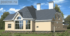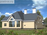 Оригинальный проект загородного жилого дома разработан для ровных участков с высоким уровнем грунтовых вод. Тщательная проработка всех четырех фасадов придает дому свой собственный шарм и изящество. Небольшая крыша над входом, минимальное количество открытых террас, заезд в гараж с уровня земли идеально подходят для наших климатических условий. Первый этаж функционально поделен на две зоны. В его левой части сосредоточены хозяйственно-технические помещения, а правая отведена для дневного времяпровождения. Из холла открывается прекрасный вид на большую двухсветную гостиную, центром которой является круговая лестница, служащая украшением интерьера и ведущая на второй этаж. Размер гостиной (57 м2) позволяет устроить в доме большой семейный праздник, деловой прием или просто дружескую вечеринку. В кухне-столовой установлена барная стойка. Для любителей домашнего просмотра фильмов здесь же имеется кинозал. На втором этаже здания размещены пять спальных комнат, имеющих выход в просторный холл, являющийся одновременно внутренним балконом.