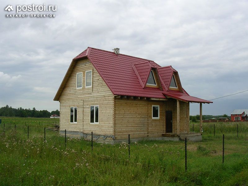 Небольшой изящный дом для летнего отдыха . Из просторной, светлой кухни-столовой арочный проем ведет в небольшую уютную гостиную с камином. Гостиная специально задумывалась небольшой, для вечерних посиделок в кругу семьи. Можно обедать или ужинать на свежем воздухе, на террасе около кухни. А можно - в эркере кухни, где широкое трехгранное окно открывает панораму сада и любимых цветов под окном. Большое жилое пространство на втором этаже можно делить по усмотрению хозяев. Для лучшей освещенности комнат второго этажа со стороны входного фасада задуманы два фонарных окна, а со стороны садового фасада - в хозяйской спальне - балкон-лоджия. Такой балкон - просто идеальное место для проводов заката!