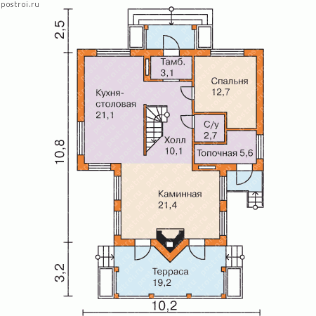 Добрый вечер, не поняла: вход в дом через топочную, нет ни толком тамбура, ни тем более прихожей? Или просто основной вход предусмотрен с противополоржной стороны дома?
