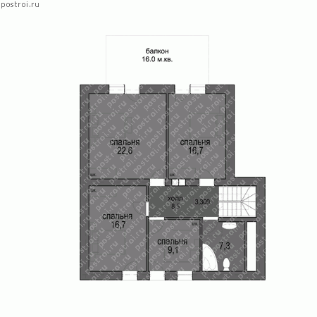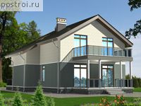 Двухэтажный дом с террасой и балконом, представлен общей площадью 164,7 кв.м с осевыми размерами 13,8 на 10,2 м. Проект рассчитан для постоянного или временного проживания семьи из 4-5 человек. Вход в дом предусматривает крыльцом и тамбур, который защищает от холодного воздуха при входе в помещение. На первом этаже располагается гардеробная, санузел с душевой, гостевая спальня, кухня, просторная гостиная с возможным выходом на террасу. Четыре спальни, ванная комната, совмещенная с санузлом и балкон, представляют второй этаж. Двухэтажный дом с террасой и балконом, также разработан в варианте с устройством цокольного этажа