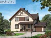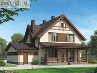 Загородный дом из газобетона, запроектирован в два этажа с террасой на заднем дворе и гаражом для одного автомобиля. Общая площадь по проекту – 192 м2 с осевыми размерами 10,94 на 9,64 м без учета террасы и гаража. Возводится двухэтажный дом на монолитной ж/б плите, стены из блоков с наружной отделкой штукатуркой и деревянными рейками, для кровельного покрытия используется – битумная черепица. На главном входе предусмотрено крыльцо с тамбуром. Первый этаж располагает просторную гардеробную, санузел с душевой кабиной, гостевую спальню, котельную, кухню-столовую совмещенную с гостиной. В помещении гостиной устанавливается камин, создающий уютную атмосферу в доме. На крытой террасе, возможно устраивать званные обеды с друзьями или родственниками. Второй этаж, предусматривает спальную зону, состоящую из трех комнат для отдыха, ванной комнаты совмещенной с санузлом и кабинета