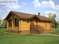 Типовой проект современного дома-бани из бруса «Лафет» (порода древесины – сосна) предназначен для строительства на загородном участке деревянной бани. Данный материал представляет собой нечто среднее между бревном и брусом, удачно плюсы того и другого. На сегодняшний день это весьма популярное решение для возведения бань и дачных домов. Фундамент по проекту – монолитный ж/б, ленточный. Для покрытия кровли выбрана натуральная черепица. Запроектирована дровяная печь с закладкой поленьев из тамбура. Состав помещений согласно типовому проекту бани: раздевалка, небольшой санузел, парная, помывочная с оборудованной купелью и отдельным выходом на улицу, светлая комната отдыха. Вход в баню осуществляется с уютного крыльца.