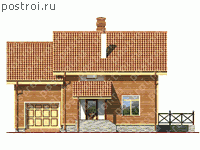 Какой проект коттеджа – с гаражом или без него, выбрать для строительства? Встроенный гараж весьма удобен в эксплуатации при ограниченной площади земли. Проектом исключена возможность попадания выхлопных газов в дом, т.к. в гараж можно попасть только с улицы. Наружные стены коттеджа возводятся из газобетонных блоков с отделкой тонированной евровагонкой. Покрытием двускатной кровли служит натуральная черепица, чьи характеристики – долговечность, надежность и отличная звукоизоляция. Для решения проблемы «посадки» дома на участок с учетом сторон света, разработан зеркальный проект коттеджа с гаражом, а также модификация – без гаража.