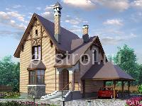 Дом двухэтажный, с двускатной кровлей. При компактной планировке, дом максимально насыщен с функциональной и архитектурной точек зрения. Гостиная и столовая-кухня представляют собой единое помещение, напрямую связанное с кухней. полукруглым эркером. Гостиная украшена камином и шестигранным эркером с большой площадью остекления. Кухня напрямую связана с полукруглой верандой, которая имеет выход на участок. На первом этаже располагаются также входная зона и тех. помещение/ постирочная. На втором этаже запроектированы три спальных и просторная ванная комнаты. К дому может быть пристроен навес для автомобиля.
