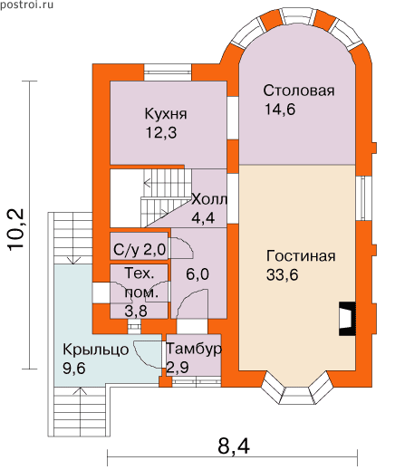 Архитектурный проект загородного дома для узкого участка. Украшением коттеджа являются эркеры на главном и садовом фасадах. Дом представляет собой компактный объем, с прекрасным функциональным зонированием в плане. Гостиная с камином и столовая являются единым пространством. К столовой, размещенной в круглом эркере, примыкает кухня. На втором этаже расположены три изолированные спальные, и две ванных комнаты. Одна из спальных имеет выход на балкон, одна - отдельную ванную комнату. При необходимости две спальные могут быть расширены за счет холла. Разработан вариант проекта коттеджа с пристроенным гаражом общей площадью 177.5 м2.