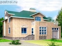 Проект загородного дома с гаражом и сауной. Размеры дома 12x8 метров позволяют разместить его даже на небольшом земельном участке.