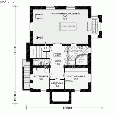 | Габариты | 12.58 x 14.22 м |