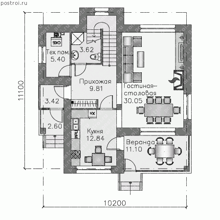 | Габариты | 11.1 x 10.2 м |