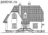 Компактный, с хорошо сбалансированными фасадами и эффективной планировкой загородный дом способен приютить семью из 3-5 человек. Гостиная и кухня-столовая запроектированы в одном объеме. Такой прием часто используется на ограниченных площадях, так как дает эффект большего пространства чем оно есть на самом деле. Несмотря на ограниченное пространство в доме предусмотрен кабинет, который при необходимости можно переоборудовать под любые потребности владельца. В мансардном этаже расположены три спальни и ванная комната с блоком сауны. Отсутствие в доме цокольного этажа позволяет возвести дом практически на любых грунтах. Очень красиво выглядит веранда с шатровой крышей.