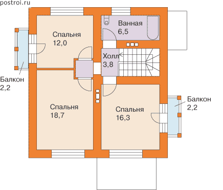 I-119-1P проект двухэтажного коттеджа из газобетона размером 9 на 8 - 2-й этаж