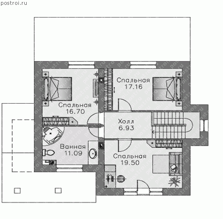 Загородный дом с просторной террасой предназначен для постоянного проживания семьи из 3–5 человек. При внешней привлекательности дом отличается комфортной планировкой, где нет ничего лишнего. В гостиной запроектирован камин, на первом этаже имеется уютное жилое помещение с окном, выходящим на террасу, из холла можно попасть в санузел, в тамбуре – витражное окно «в пол». На втором этаже располагаются три спальни и просторная ванная комната. Высота от пола до потолка – 3 метра, высота мансардного скоса – 2 метра.