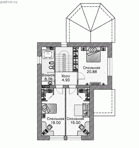 Внешний облик комфортабельного дома для узкого участка, три этажа которого вмещают в себя множество функциональных помещений, навеян образом скандинавских построек. Об этом говорят теплые бежевые и шоколадные оттенки в отделке лаконичных фасадов со строгими очертаниями, панорамные окна, остекленная веранда в пространстве эркера дворового фасада, камень грубой фактуры, используемый в отделке цоколя. Планировочным решением в цокольном этаже предусмотрено наличие встроенного гаража на два автомобиля, сауны с душевой и комнатой отдыха, а также технических и хозяйственных помещений. Первый этаж отведен под зону дневного пребывания, включающую в себя кухню-столовую с выходом на остекленную веранду и квадратную гостиную с выходом в помещение зимнего сада. Второй этаж предназначен для спальной зоны. Ее составляют три спальни, две из которых являются смежными и идентичными по площади, а также ванная комната.