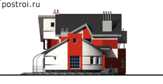 Объемное решение здания построено на теме комбинации двух цилиндров, проработанной Константином Мельниковым в знаменитом доме в Арбатских переулках с введением в экстерьер фасадов современных отделочных элементов. В планировочном решении помещений дома сделано функциональное разделение внутреннего пространства первого этажа на две зоны - основную зону дневного пребывания: холл с лестницей, кухня, столовая, гостиная, кабинет, гостевая комната и вспомогательную зону: топочная, постирочная, сауна с бассейном. На втором этаже здания запроектированы три спальни. Одна главная (родительская) и две детские. В пространство главной спальни включено гардеробное помещение, санитарный узел и открытая терраса. Для обслуживания двух детских спален на втором этаже запроектирована большая ванная комната. В мансардном помещении возможно устройство студии или игрового помещения для детей. Связь между этажами дома осуществляется по общей лестнице.