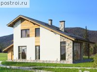 Дом из пеноблоков с гаражом идеально впишется в любой ландшафт. К просторный пенобетонному дому прекрасно подходит двухместный вытянутый гараж и открытая терраса. На первом этаже находится просторный холл с выходом на кухню-столовую, гостиную и гостевую комнату. На втором этаже выход в три спальни комнаты, второй этаж -это территория отдыха