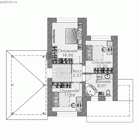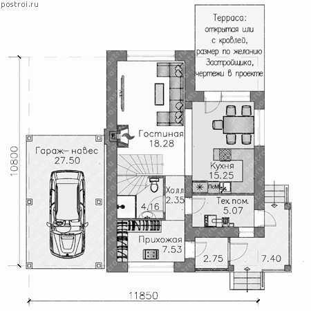 Проект дома из газобетона до 150 кв.м, представлен габаритами 10,8 на 11,85 м включает гараж-навес для одной машины. Проект позволяет разместить семью из 3-4 человек, как для постоянного проживания, так и для отличных выходных на свежем воздухе. Возведение данного дома возможно, как из газобетона, так и из кирпича, с наружной отделкой штукатуркой. На выбор застройщика, предлагается вариант террасы, крытой или открытой, также возможна задача габаритов по личным пожеланиям. Первый этаж, располагает прихожую с гардеробной, санузел с душевой кабиной, в гостиной возможно установить камин, кухня-столовая предусматривает выход на террасу, расположенную на заднем дворе. Второй этаж, представляет спальную зону в виде трех комнат и большой ванной объединённой с санузлом. Различные варианты дома из газобетона до 150 кв.м, можно просмотреть во вкладке варианты проекта