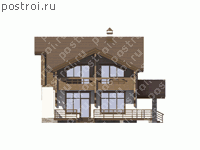 Проект комбинированного дома из кирпича и бруса позволяет гармонично сочетать в возводимом здании лучшие качества этих материалов. Выбором материалов обусловлен и внешний облик дома, а кроме того, его формирует наличие живописного двойного балкона, оригинальная многоугольная конфигурация окон и приятное сочетание оттенков отделочных материалов. В отделке первого этажа использованы штукатурка и натуральный камень. Покрытие кровли – цементно-песчаная черепица. Планировочное решение позволяет разместить на втором этаже мансардного типа четыре спальни, две из которых выходят на балкон, а также ванные комнаты. Междуэтажная лестница размещается в пространстве квадратного эркера. Первый этаж разделен на две функционально различные части. Значительная площадь первого этажа предназначена для гостевой зоны – это гостиная, где запроектирован камин, а также примыкающая к гостиной кухня. Из помещения гостиной имеется выход на просторную, огибающую два фасада здания, террасу. Входная группа состоит из тамбура и прихожей. В правой части первого этажа находится котельная с отдельным выходом на террасу, жилая комната для гостей или для пожилого домочадца, а также помещение сауны с душевой для комфортного проживания загородом.