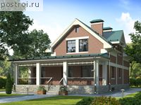 Кирпичный дом с террасой, представлен общей площадью 209,1 кв. м и габаритами 9,27 на 16,2 м. Планировка данного проекта, позволяет разместить семью из 3-4 человек. В доме предусмотрен цокольный этаж, второй этаж запроектирован мансардным. Для отделки кирпичных стен используется облицовочный кирпич, штукатурка, металлическая черепица применяется для покрытия мансардной кровли. Цокольный этаж, располагает сауну с душевой и просторной комнатой отдыха, также кладовой и большой котельной. На первом этаже, запроектирована веранда с выходом на террасу, кухня-столовая, санузел с душевой кабиной. Помещение гостиной выделяется эркером, который визуально увеличивает внутреннее пространство помещения и камином, который позволяет в зимние вечера с чашечкой шоколада греться у огня. Зона сна хозяев, представлена на втором этаже в виде трех спален и санузла с душевой кабиной.