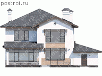 Проект двухэтажного дома с гаражом для одной машины и верандой, общей площадью 243,9 кв.м и габаритами 14,4 на 14,7 м. На переднем фасаде выделяется эркер запроектирован на первом этаже, также обращает внимание внешняя отделка дома в виде комбинирования лицевого кирпича и декоративной штукатурки. Основанием для проекта с гаражом и верандой служит монолитная ж/б плита, стены из газобетона альтернативой может быть пустотный кирпич, для покрытия кровли используется битумная черепица. Планировка первого этажа, включает кабинет, кухню-столовую с выходом на остекленную веранду и террасу, в гостиной предусмотрен камин. Для устройства личного котла, оборудована за гаражом техническое помещение с выходом на улицу. Второй этаж, располагает три спальни, большую ванную комнату, санузел с душевой кабиной. Проект из газобетона разработан в зеркальном варианте, также возможен вариант без гаража