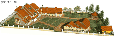 Проект жилого коттеджа для постоянного проживания. Полуоткрытый на южную сторону кирпичный дом с врезающимися друг в друга объемами, со множеством пилонов, каждый из которых накрыт крышей производит впечатление уголка средневекового города, который формируют два больших основных блока: жилого дома и бани. После входной группы, состоящей из прихожей, гардеробной и гостевого санузла, гостей встречает парадная лестница, приподнятая над уровнем входной группы, за которой располагаются гостевые комнаты. Справа от входа располагается бильярдная с переходом в блок бассейна. Слева- кухня-столовая с хозяйственной лестницей, ведущей в подвал с обслуживающими помещениями. На мансарде- спальные комнаты, ванные и гардеробные.В блоке бассейна размещаются набор помещений сауны. Над бассейном запроектирован балкончик.