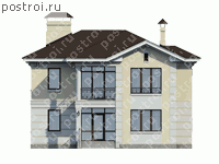 Двухэтажный дом с классическими фасадами станет для своего владельца и его семьи не просто комфортным жильем, но определенной имиджевой составляющей. Аристократические фасады отличают простота и изящество линий, сдержанность декора и гармоничность формы. Ажурная ковка ограждений в оформлении балкона, окон, крыльца, а также светлая оштукатуренная поверхность стен и круглая колонна, являющаяся еще одним украшением балкона, асимметричность главного фасада – такое сочетание оживляет и делает выразительным облик дома. Проектом предусмотрено два полноценных этажа. Что касается планировки, она построена по принципу максимального комфорта. На первом этаже, помимо помещений гостевой группы, в распоряжении хозяина дома находится кабинет. На втором этаже имеются три просторные спальни. Выход на живописный балкон осуществляется из холла.