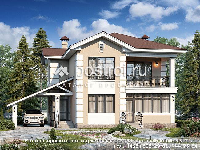 Прекрасный дом, наружные стены которого могут быть выполнены как из кирпича, так и из газо(пено)бетона, покрытием кровли является натуральная или битумная черепица, общая площадь дома – 212,27 кв.м, жилая – 74 кв.м.. На цокольном этаже дома запроектировано техническое помещение, большая душевая, отдельно санузел постирочная, выделена комната для отдыха, есть холодная кладовая для хранения различной консервации. Вход на цокольный этаж может осуществляется как из улицы, так и из прихожей дома. Первый этаж представляет: тамбур, позволяющий сохранять тепло дома, небольшая кладовая, ванная совмещенная с санузлом, гостиная-столовая, кухня с выходом на веранду. На втором этаже кирпичного дома располагается три спальни, ванная с санузлом, просторная лоджия, на которой теплыми вечерами можно любоваться на звезды