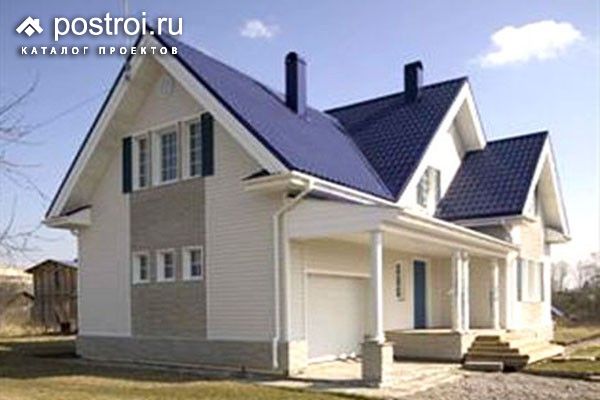 Интересное сочетание материалов отделки в сочетании с пропорциями и игрой объемов делают этот дом очень привлекательным. Кроме того, этот дом имеет простое и удобное планировочное решение. Именно эти обстоятельства позволили этому проекту занимать лидирующие позиции в течение многих лет.
