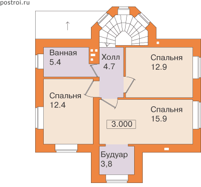 Здравствуйте. Подскажите какой размер дома без эркера и будуара. Какая толщина несущих стен? И входит ли площадь лестницы в общую площадь дома? С уважением, Юлия.
