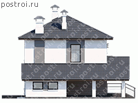 Первостепенная задача, если вы планируете построить двухэтажный дом, с чего начать – документация проекта. Выбор архитектурно-строительных чертежей обусловлен, в том числе, и желаемым материалом возведения наружных стен – необходимо определиться, из чего строить. Газоблок и кирпич относятся к наиболее хорошо сохраняющим тепло в доме, но стоимость блока ниже, и для того и другого в данном проекте предложен расчет объема расхода. Квадратный план теплого контура здания дополнен экономичной альтернативой встроенному гаражу – навесом для автомобиля, котельной, уютным входным крыльцом и террасой, габариты которой зависят от пожеланий и размером прилегающей территории. На первом этаже запроектирована жилая комната, гостиная с угловым камином, кухня-столовая, с/у и прихожая с холлом. Второй этаж двухэтажного дома предназначен для зоны спален.