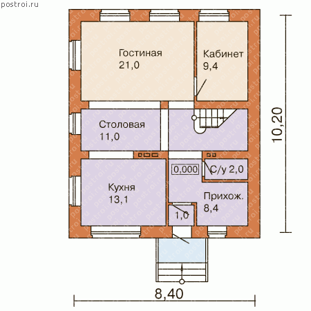 Уютный дом с мансардой. На первом этаже расположены гостиная, кабинет, столовая, кухня, санузел и прихожая. На мансардном - три спальни, холл, ванная и балкон.