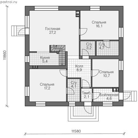 | Жилые комнаты 1 этажа, кроме гостиных | 3 шт |