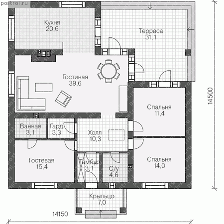 | Габариты | 14.5 x 14.15 м |