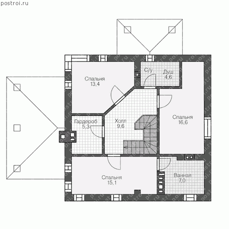 Для людей, находящихся в поисках проекта загородного коттеджа с квадратным планом – проект дома 10х10 (с сауной). С террасы, оформленной массивными колоннами, облицованными камнем, можно попасть напрямую в столовую с выделенной зоной кухни и гостиную. Украшением этого помещения служат угловые панорамные окна. Двустороннее крыльцо предваряет вход в дом. Междуэтажная лестница с забежными ступенями расположена в центре. Три удобные жилые комнаты на втором этаже, предназначены для сна и отдыха владельцев дома. Немаловажная деталь – одна из спален оборудована собственным санузлом. Для проекта дома 10х10 с сауной разработаны различные модификации: зеркальное отображение, вариант с гостевой внизу и навесом для а/м, с иной планировкой внутреннего пространства.
