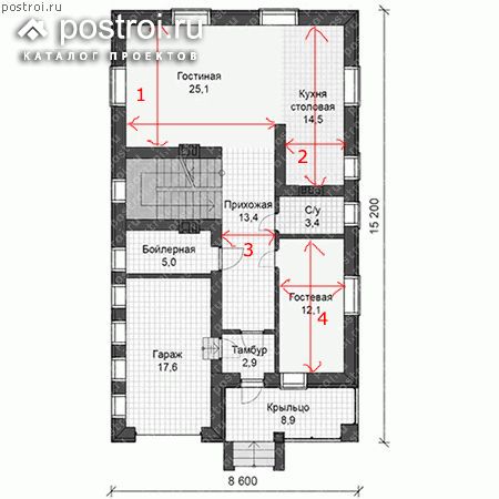 1)Если гостиная 3400х4500 - то почему на плане она 25 метров?