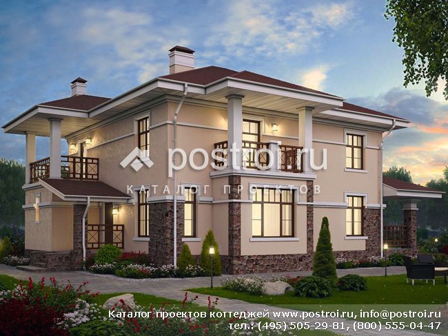Двухэтажный коттедж из газобетона, запроектирован в европейском стиле общей площадью 197,37 кв.м и габаритами 13,5 на 11,95 м. Проект соответствует все современным нормативам и стандартам, внутренняя планировка помещений, представлена со всеми комфортабельными условиями для проживания семьи из 3-5 человек. Вход в коттедж возможен с парадного входа, а также с заднего двора через террасу . Первый этаж, располагает тамбур, просторную гостиную с выделяющимся эркером и камином, кухню-столовую. Запроектированный камин в гостиной, позволяет вечером одному или с друзьями расслабится, наблюдая за огнем. Также для хозяев с пожилыми родителями на первом этаже, предусмотрена спальня и санузел с душевой кабиной. Вход в котельную возможен с улицы. Также для отдыха гостей, обустроена гостевая спальня. Четыре спальни, два балкона, ванная комната, санузел и общая гардеробная запроектированы на втором этаже. Данный коттедж в европейском стиле, разработан в зеркальном варианте и варианте из кирпича