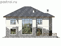 Для комфортной жизни семьи из 4-5 человек прекрасно подойдет двухэтажный загородный коттедж. Проект дома из газобетона , с гаражом, с угловой террасой первого этажа и просторным балконом. Выход на балкон – из холла с расположенной там междуэтажной лестницей. В распоряжении хозяев три спальни на втором этаже и гостевая или спальня для пожилого члена семьи – на первом этаже. Пространство первого этажа разделено на две части холлом. Преимущество такого разделения дома состоит в рациональной организации внутреннего пространства. В результате зона общесемейного досуга, а именно: кухня с выходом на угловую террасу, гостиная и прилегающая к ней гостевая комната, отделена от помещений хозяйственного назначения, сауны и гаража.