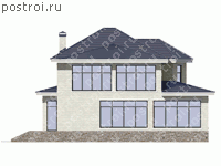 Большой двухэтажный дом, предусматривающий устройство бассейна и веранды, запроектирован общей площадью 253,81 кв.м и габаритами 12,53 на 16,94 м. На главном фасаде проекта, выделяется эркер, который визуально позволяет увеличить внутреннее пространство помещения. На главном входе в двухэтажный дом, обустроен тамбур. Первый этаж, располагает кухню-столовую, гостиную с камином, санузел, гардеробную, котельную с выходом на задний двор. Помещение бассейна, предусматривает панорамное остекление, что позволяет обширнее любоваться загородным пейзажем. Также для отдыха с друзьями, запроектирован хамам и душевая. Местом для сна и отдыха хозяев, служит второй этаж, представленный двумя спальнями, в одной обустроен камин, общей гардеробной, санузлом с душевой кабиной. Кроме бассейна, в двухэтажном доме, представлен тренажерный зал и просторная веранда, для устройства званых ужинов