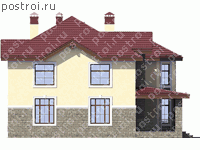 Отличное решение для постоянного проживания большой семьи – проект дома из газобетона 2 этажа с мансардой. Достаточно свободные 4 спальни на втором этаже, 2 комнаты на первом (одна из них отведена под кабинет), просторная гостиная – таким образом организовано жилое пространство этого загородного дома. Дополнительно имеется помещение в мансарде. Внутренняя лестница удобна в эксплуатации – п-образная, с междуэтажной площадкой, имеет в качестве источника освещения вытянутое окно арочной формы. Главный фасад украшают массивный трехгранный и квадратный эркеры, а также крытая терраса с колоннами, облицованными камнем. Для проекта дома из газобетона (2 этажа с мансардой) разработано несколько модификаций, удовлетворяющих всем пожеланиям застройщиков.