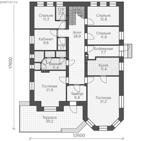 | Габариты | 12.6 x 17.6 м |