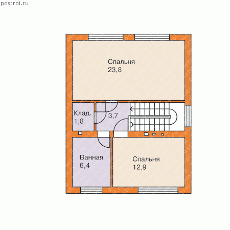 Теплый уютный дом прекрасно подойдет для небольшой семьи. Несмотря на небольшой размер в доме, тем не менее, есть все необходимые для проживания помещения. Проект компактного дома позволит легко построить этот чудесный дом на участке даже с самой небольшой площадью. Все технические помещения первого этажа расположены в передней части дома из кирпича, что является необычной, но приятной изюминкой данного проекта, так как всю заднюю часть первого этажа занимает просторная гостиная, из которой вы можете попасть в сад. На втором этаже расположены две уютные спальные комнаты, кладовая и отдельная ванная комната.