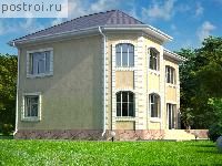 Двухэтажный загородный дом с эркером, общей площадью 172,5 кв.м и габаритами 10,42 на 13,2 м, высота этажа 3,0 м. Красивый дом с выделяющимся эркером на переднем фасаде, запроектирован на ленточном сборном фундаменте, наружные стены из кирпича с отделкой штукатуркой или кирпичом. Планировка, предусматривает проживание семьи из 3-4 человек. Вход осуществляется, через тамбур, который позволяет сохранять тепло в доме и не пропускать неприятные запахи. Первый этаж, располагает большую гостиную, топочную, кухню-столовую, кладовую, санузел, кабинет для работы. Второй этаж, представлен спальной зоной в виде трех комнат и большой ванной комнаты с санузлом. Двухэтажный загородный дом, разработан в зеркальном варианте