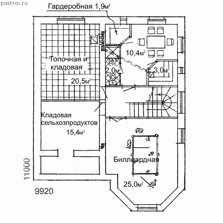 Представленные чертежи отлично подходят для тех, кто всегда мечтал о загородном доме, где можно будет собираться семьями на выходные. W-252-1K – это дом с цоколем, нижняя часть которого отведена под развлекательную зону - бильярд, комната отдыха и сауна. Верхний уровень выделен под спальни, что замечательно изолирует шумы и не препятствует полноценному сну. Помимо трех спальных, наверху также расположена просторная игровая для детей. Первый этаж состоит из холла, гостиной и вместительной кухни-столовой. По проекту наружные стены дома выполнены из кирпича, а внутренние перекрытия – сборные железобетонные, что обеспечивает прекрасную прочность здания и хорошие теплоизоляционные показатели. Частный дом с цоколем – оптимальное решение проблемы недостаточной жилой площади в городской квартире.