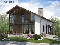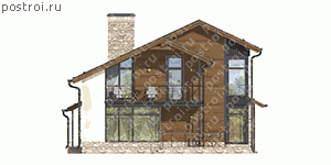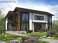 Проект дома на две семьи, общей площадью 271 кв.м и габаритами 18,38 на 10,2 м, выполнен в средиземноморском стиле с большим количеством панорамных окон, которые считаются модным и смелым архитектурным решением, позволяющие увеличить естественное освещение и визуально расширяют пространство. Фундаменты использующиеся для постройки дома на две семьи – монолитная ж/б плита, наружные стены возводятся из газобетонных блоков с утеплителем, а их отделка производится штукатуркой. В проекте предусмотрены все условия для постоянного проживания в нем двух семей. Вход в дом оснащен крыльцом, небольшой прихожей, кладовой, кухня-столовая объединённая с гостиной имеет выход на террасу. На втором этаже располагаются две спальни с выходом на террасу, кабинет, ванная комната, объединённая с санузлом. Аналогичные помещения в доме запроектированы и для другой семьи
