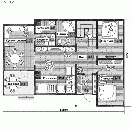 | Габариты | 9.85 x 13.65 м |