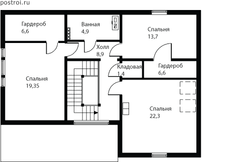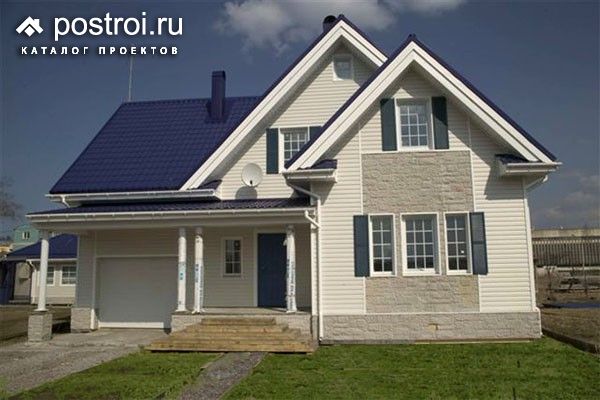 Проект деревянного дома, который можно отнести к классу экономичных домов. Такой дом отлично подойдет для комфортного отдыха на природе. Он отличается своей функциональностью, в проекте предусмотрено все необходимое. На первом этаже уютная гостиная с камином, сообщающаяся с кухней, есть отдельное помещение для топочной и встроенный в дом гараж. На втором (мансардном) уровне расположена уютная спальная зона, оснащенная ванной и гардеробными комнатами.