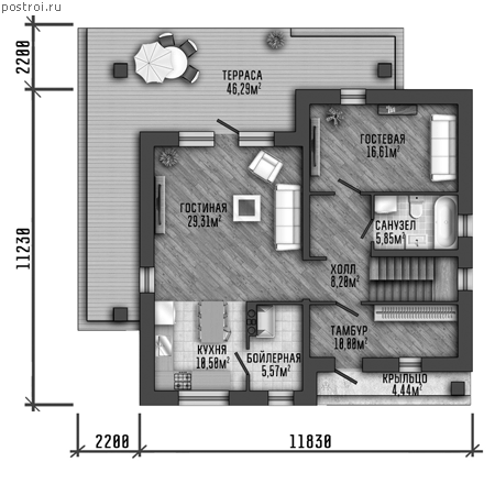 | Габариты | 11.83 x 11.23 м |