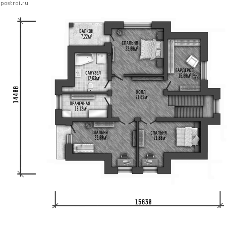 | Спальни и жилые комнаты, кроме гостиных | 4 шт |